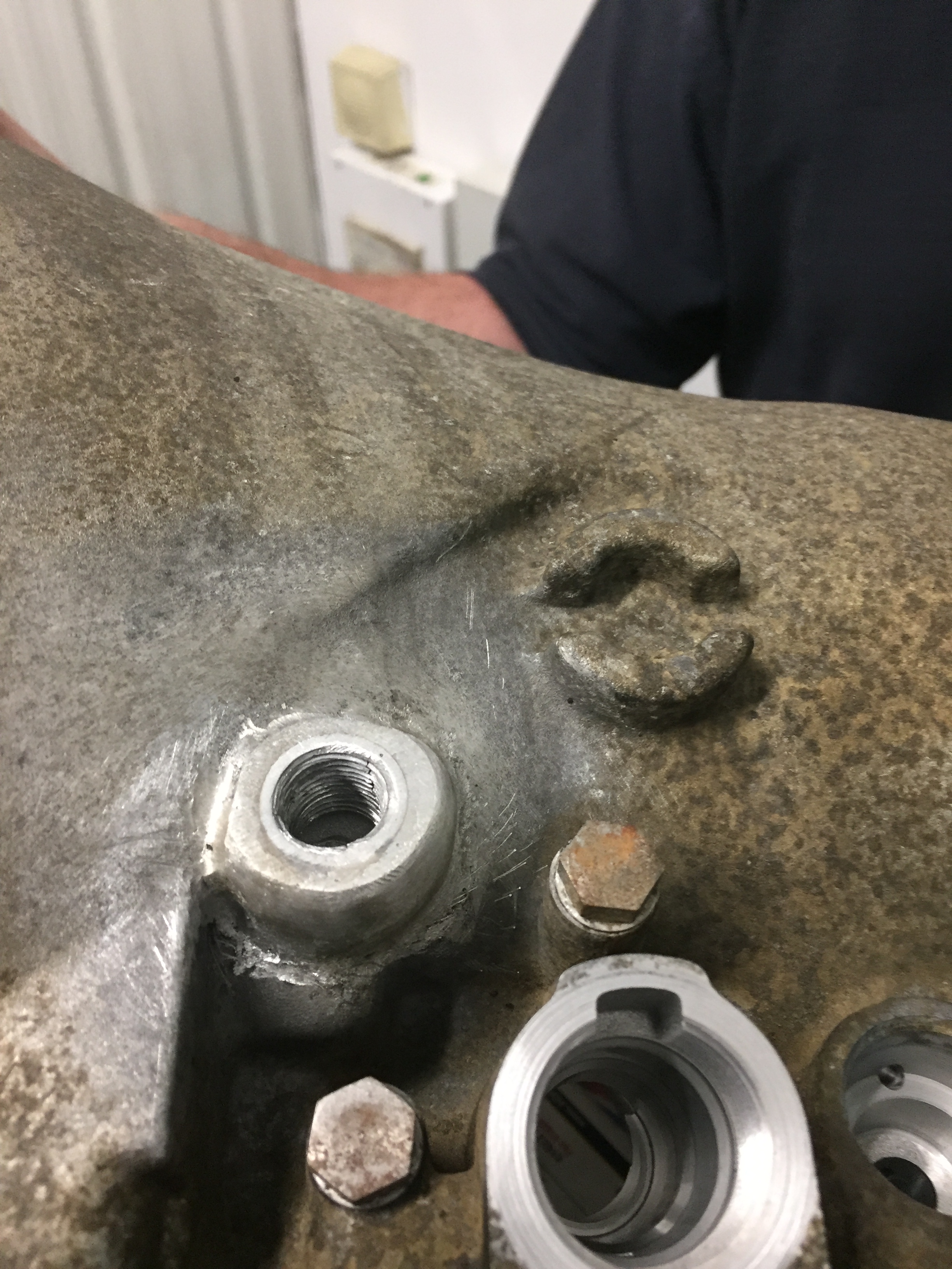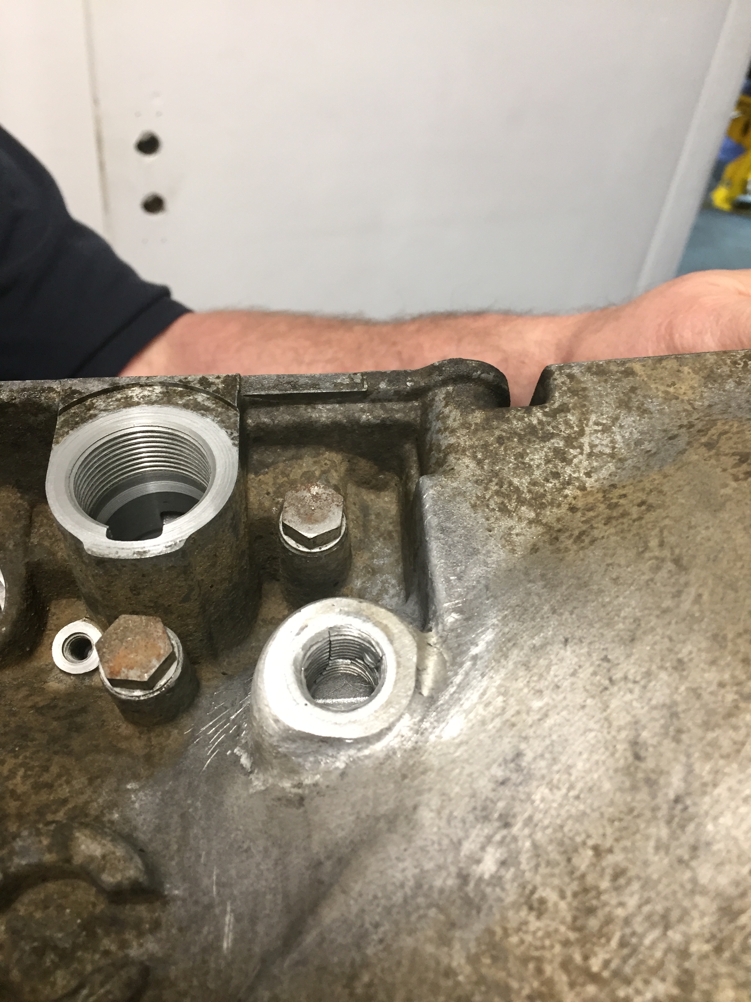 There are a number of cracks where the transmission fluid pipe bolts onto the large gearbox case.