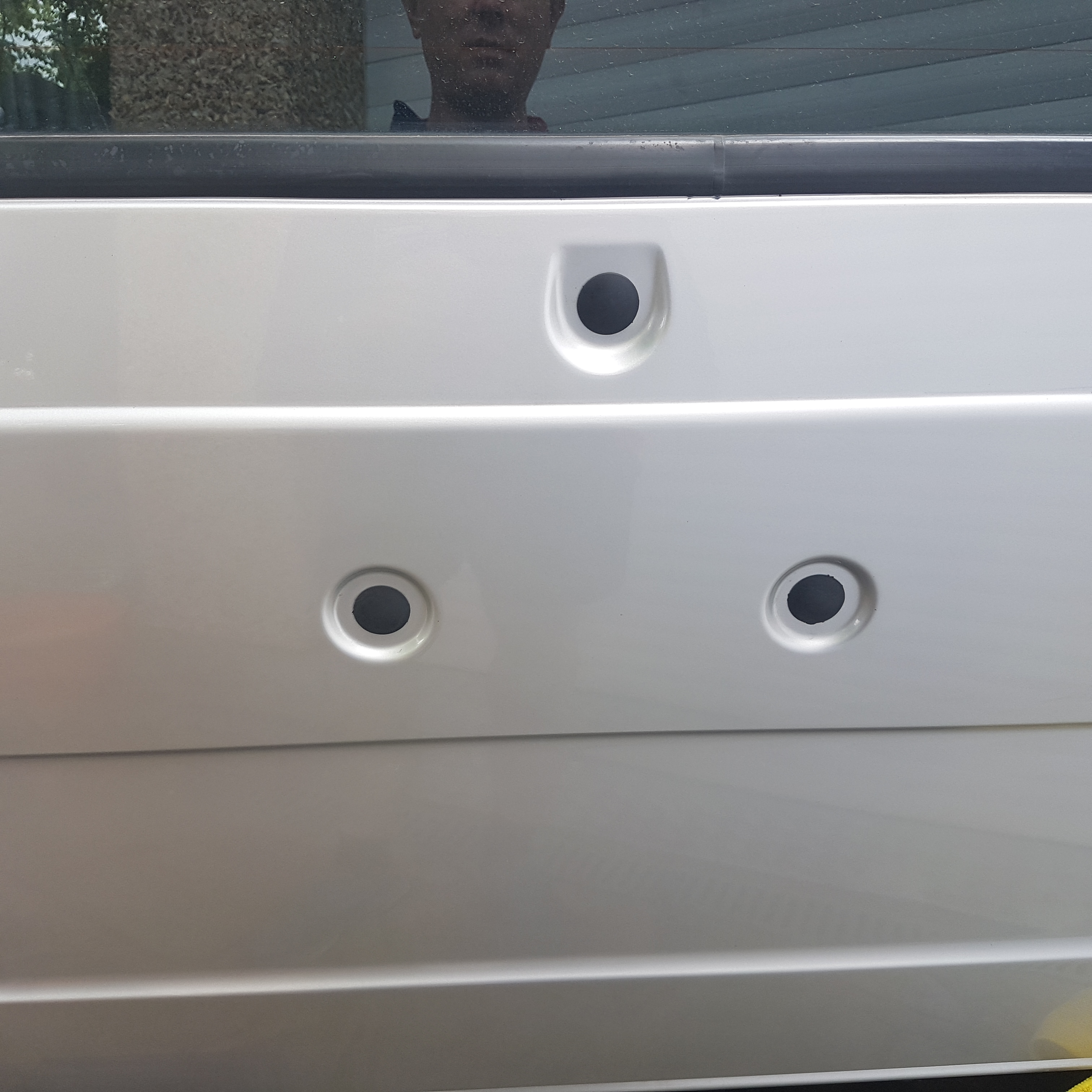2) Have some filler cut out of wood or plastic to the profiles of the hole areas. These machined or cut outs to sit flush with body line; cover the cut outs in slightly over sized dimension to the shape outline in vinyl of same body colour.