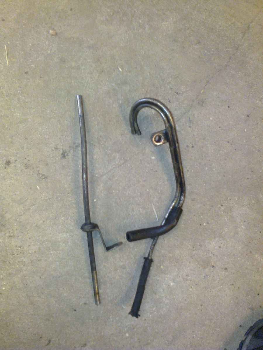 The Bracket and Grommet set up look like the dipstick one and it looks like a pipe that the end 3" has been pushed inside something else...i.e the engine sump